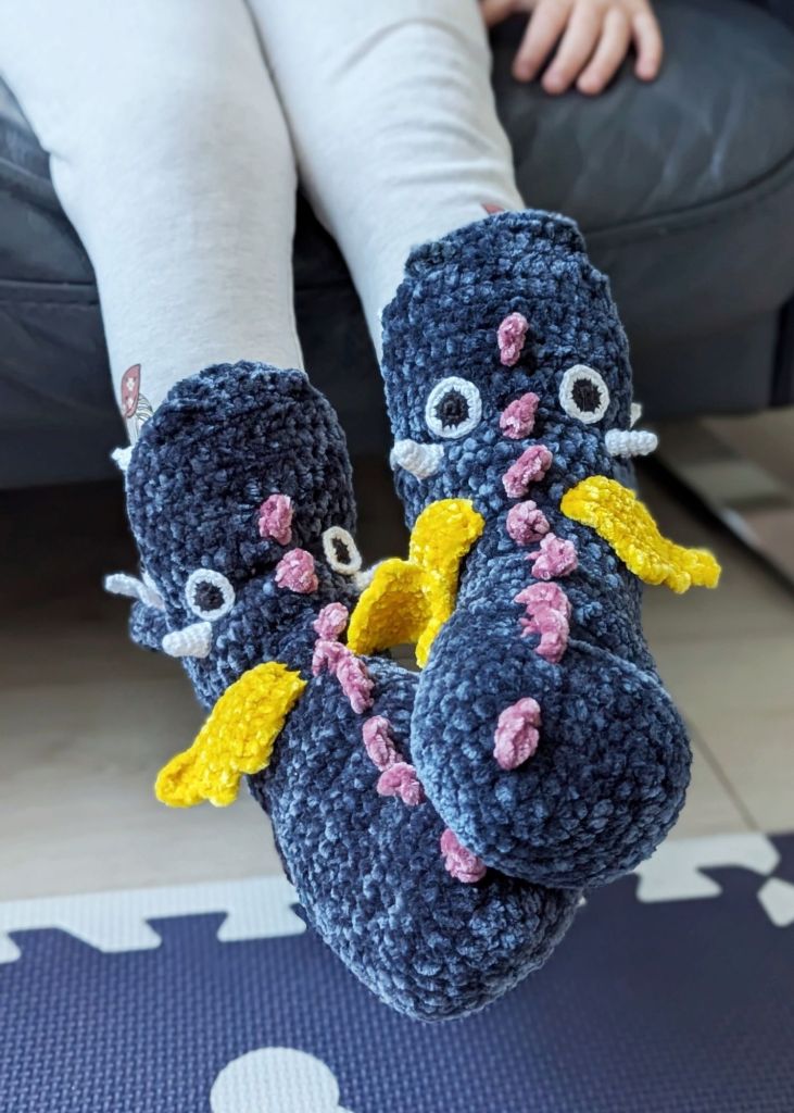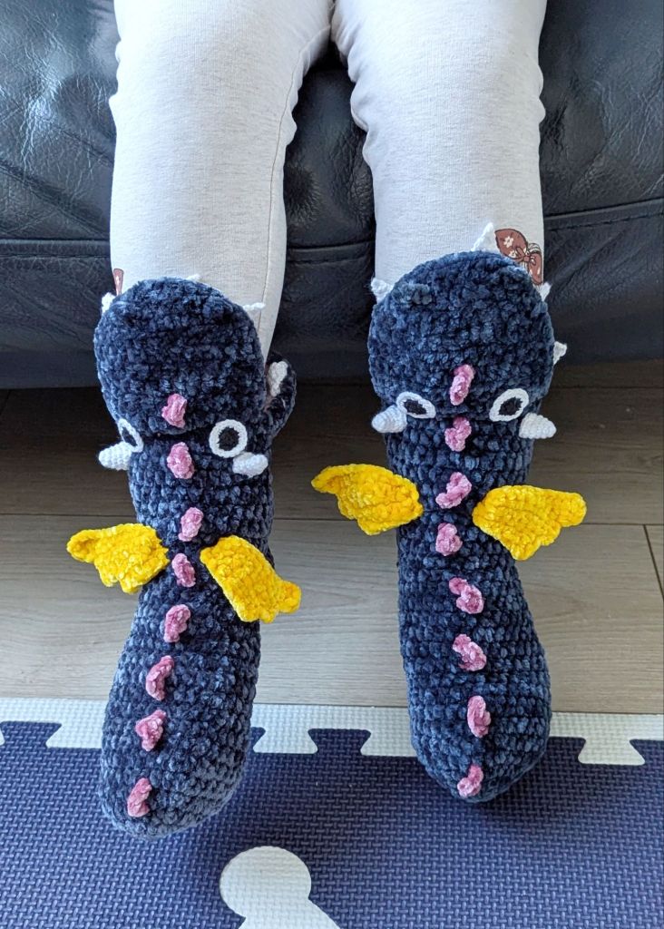 Looking for an easy and quick crochet project that’s a little different? How about those cozy crochet slipper dragon socks?