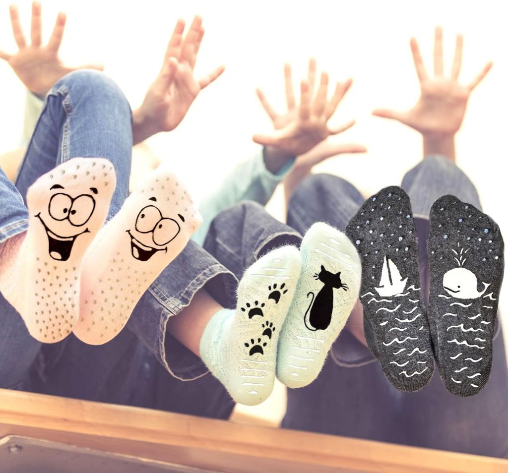 Especially for socks or slippers for the elderly and toddlers, it’s recommended to add a non-slip solution to the soles to give the socks more grip on the floor. For this, you can use sock stop fabric paint, rubber milk, or anti-slip pads that can be ironed on (or sewn on, if the ironed-on material doesn’t stick well to the sock fabric).