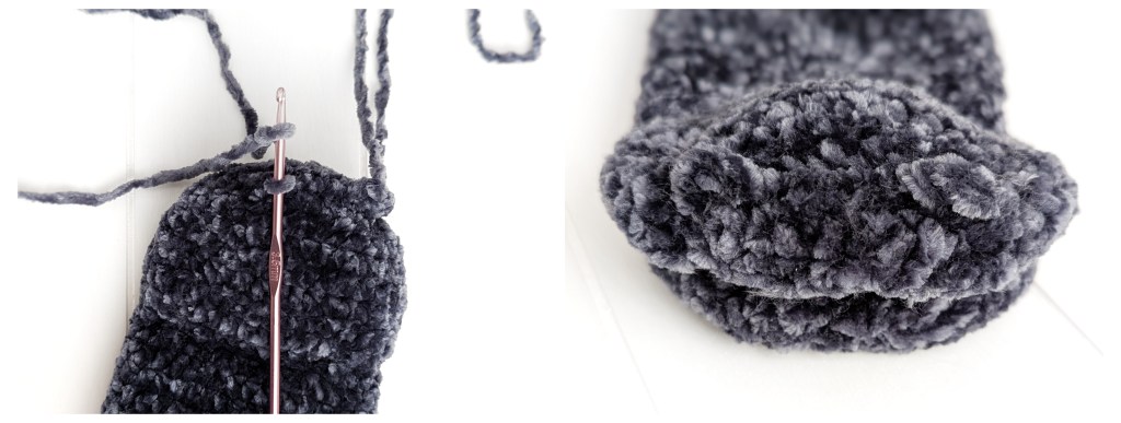 - Fluffy yarn: I used Bohème Velvet Double by Go Handmade (100% polyester) with a 3.5 mm crochet hook. For kids’ sized socks (27/28), you need about 2 yarn balls.
