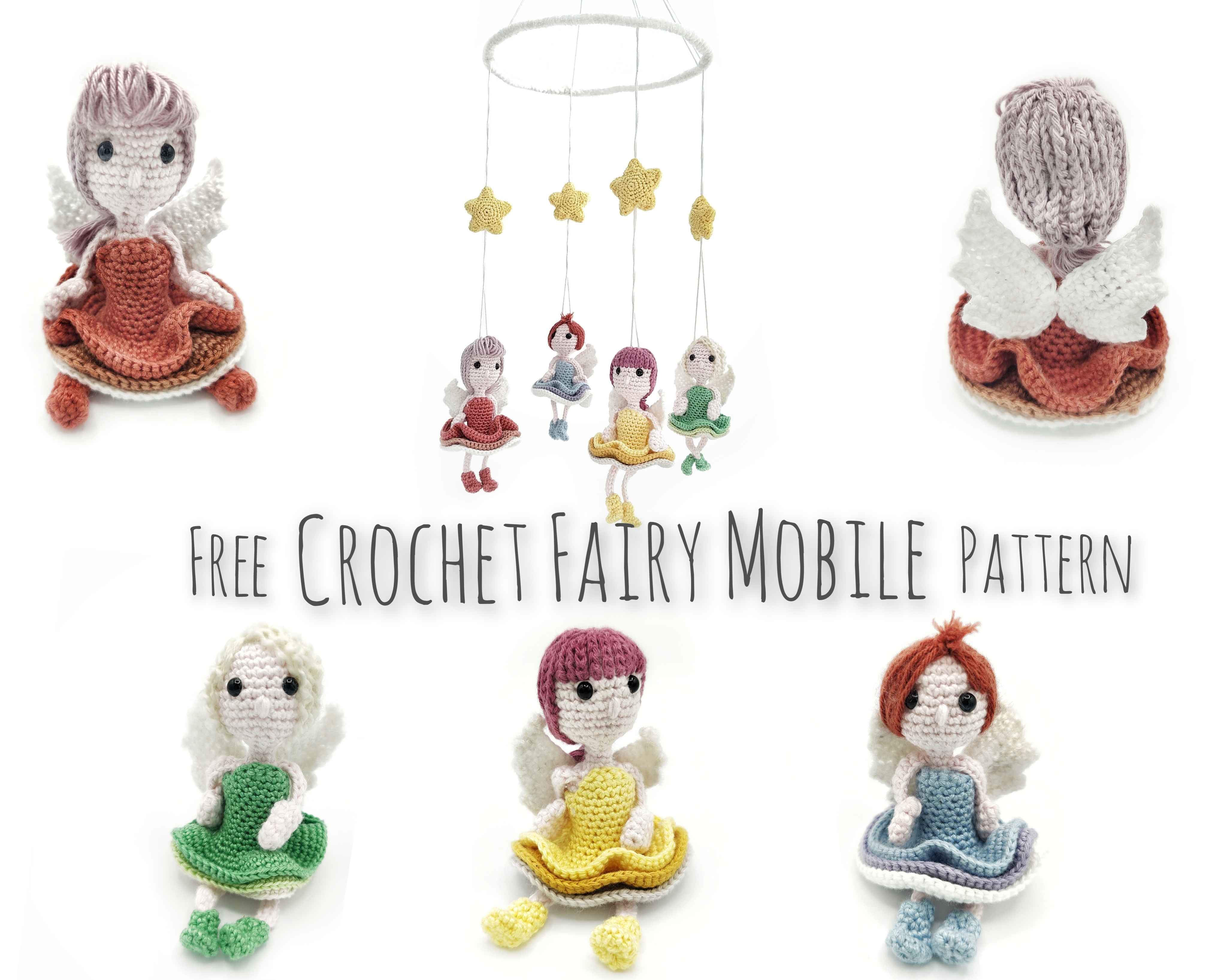 With this free crochet mobile pattern you bring fairies into your home. Hang the crochet fairy mobile above the baby’s changing table or the crib and your little one will always be protected by these magical creatures!