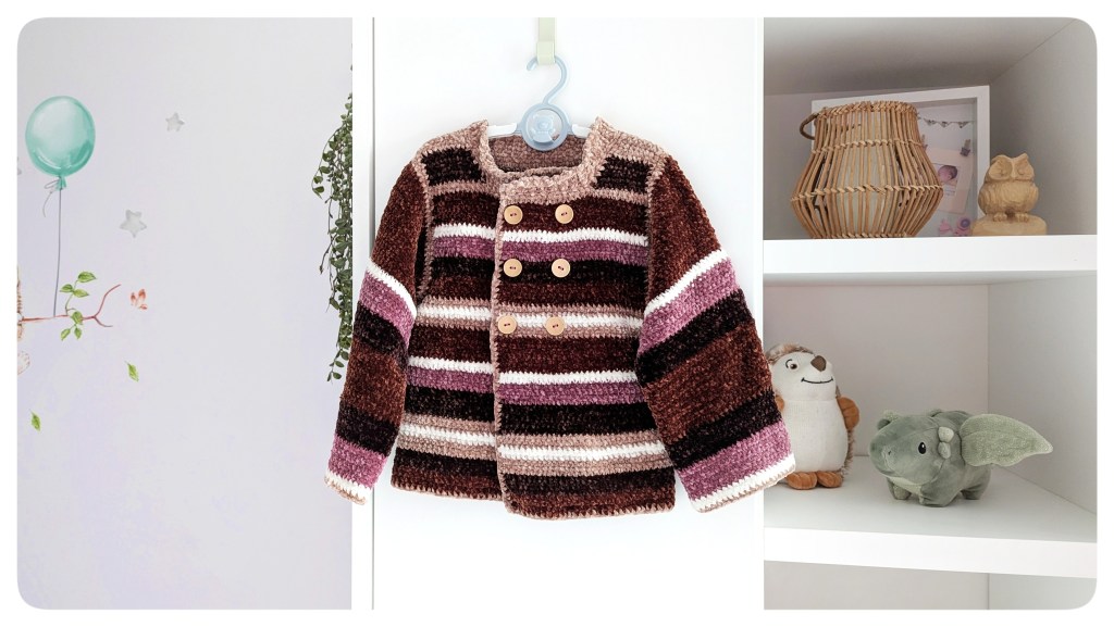 With the first colorful leaves and crisp mornings, it’s finally the season to bring out warm and snuggly clothes again. And this year, my kids are getting something extra special: a hand-crocheted transitional jacket made from wonderfully soft plush yarn.