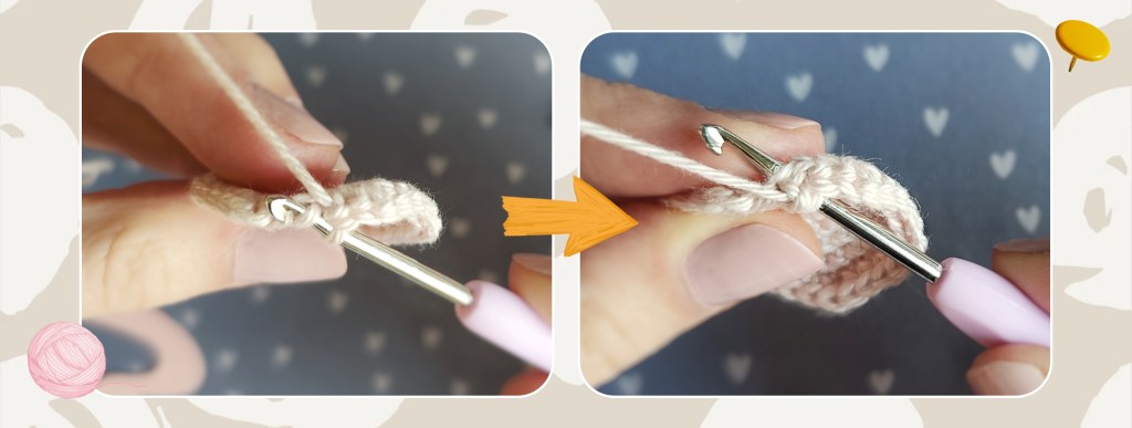 - you start your first round (the magic ring) with a chain 1 (for single crochet rounds) / chain 2 (for half-double crochet rounds) / chain 3 (for double crochet rounds), then continue the number of stitches in the MR.