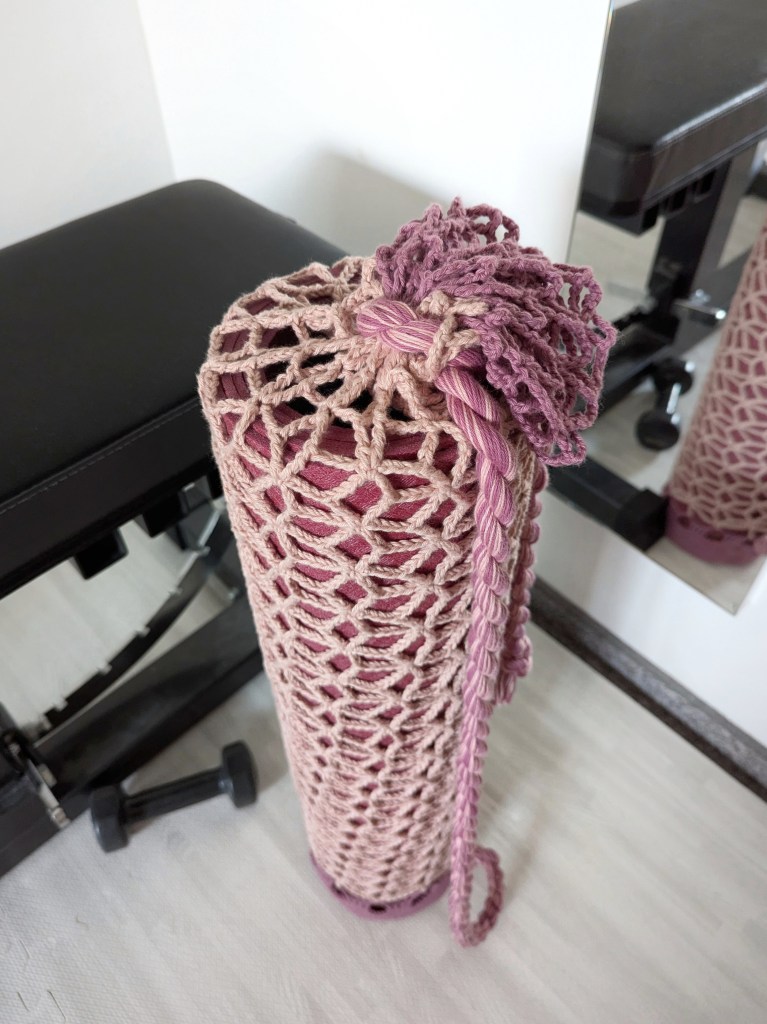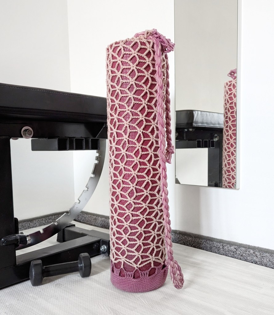 From floor to cord – the crochet bag for your yoga or fitness mat is made with only yarn and a crochet hook.