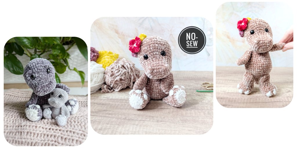You love crochet and dinos but aren’t a fan of sewing? Then this no-sew crochet dinosaur pattern is exactly what you need! This dino pattern keeps things simple. All the pieces are crocheted directly onto the body—no extra sewing needed.