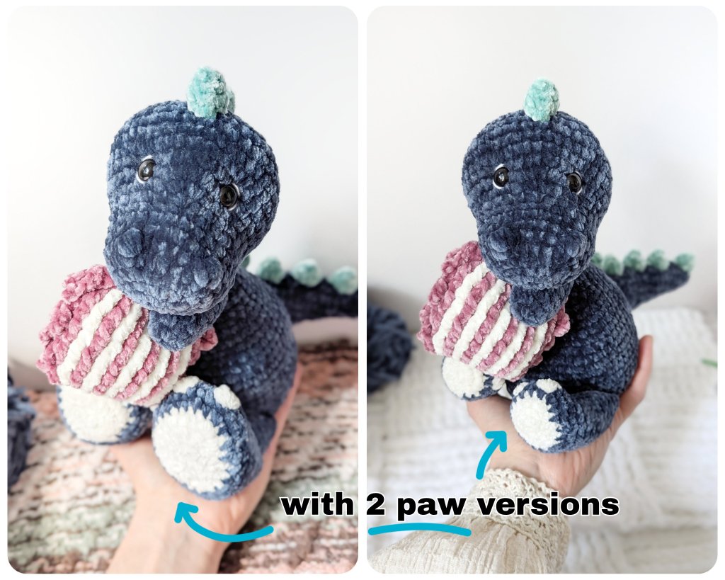 - Two Versions: You can crochet the dino with either small or large claws. The pattern provides instructions for both variations.